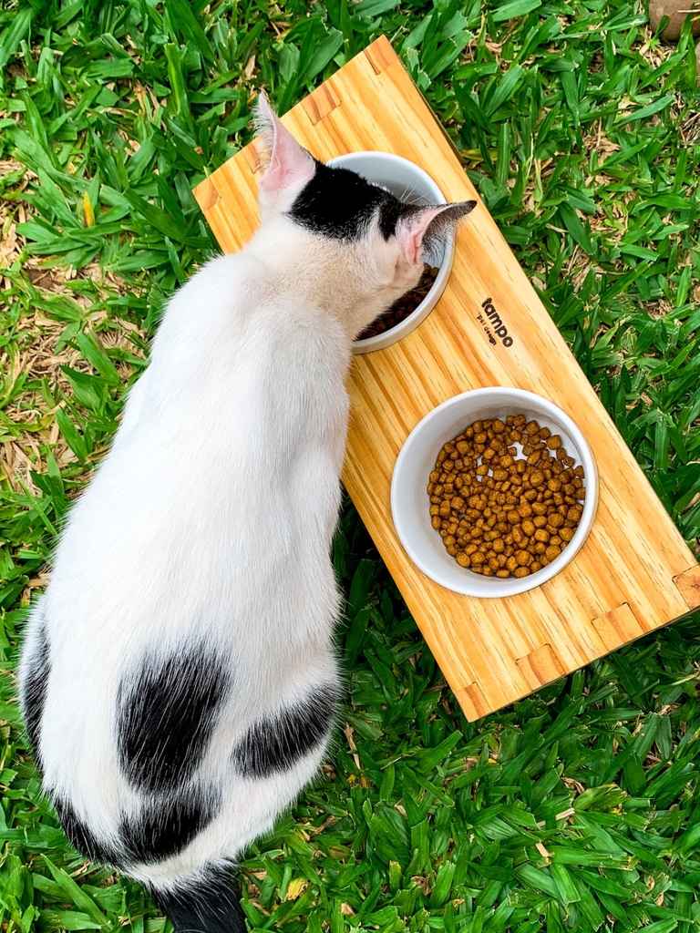 Pra ti que curte unir beleza com sustentabilidade esse móvel vai ser o aliado do teu amigo e de quebra dar aquele tchãn no teu ambiente. Ele pode ser utilizado com água ou comida, o que o teu coração e a fome do teu bichinho mandarem :D ele possui uma inclinação leve que irá ajudar o teu amigo na hora do papa e da digestão!